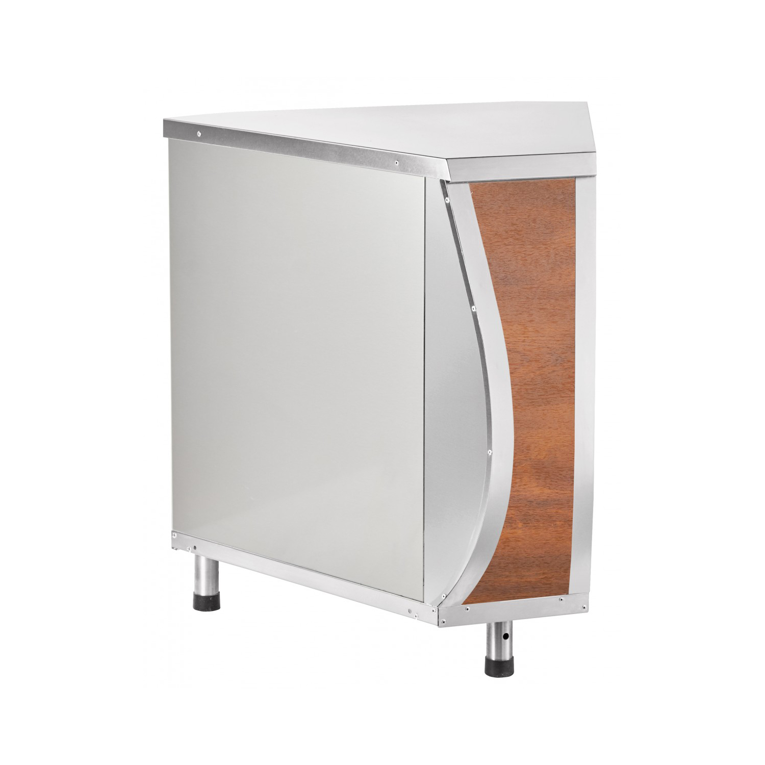 Модуль может быть изготовлен из "кашированного" (декорированного под дерево) металла. Цена прилавка будет такая же как из нержавеющей стали.